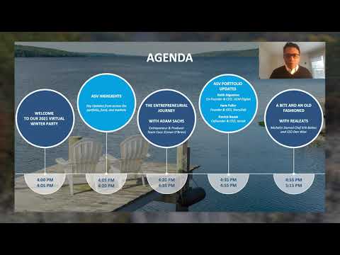 ASV Managing Partner Somak and RealEats CEO Dan Wise introduce the ASV community to this year's virtual evening of talks, presentations and special demonstrations by Michelin Starred RealEats Chef Erik Battes. A short, edited video features three ASV Fund II portfolio companies.